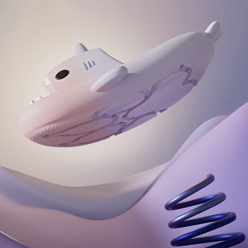 Finally, PLUSHY'Z®️ unveils a cutting-edge iteration of their signature SHARKY'Z™️ Shark Slides in an alluring pastel bicolor. These sandals are sure to become your go-to for an idyllic day at the shore or a relaxed amble about town.