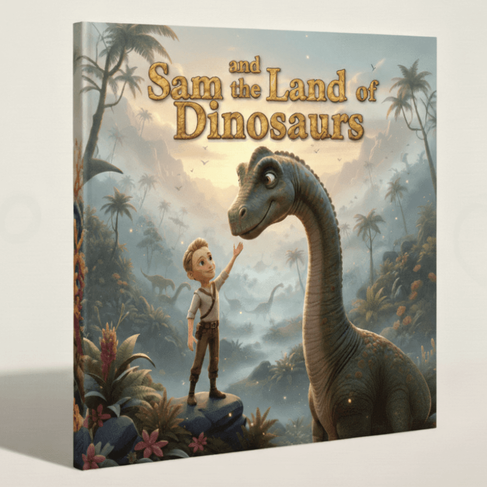 Transported to a peaceful valley of dinosaurs, {YourChildName} befriends gentle giants and tiny hatchlings, discovering bravery and the importance of caring for others — even creatures from another time.